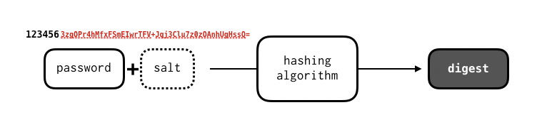 해싱 기법은 단방향으로 적용되기 때문에, 복호화가 불가하다.즉, 서비스에서 사용자의 비밀번호를 암호화하여 DB에 저장한 뒤에는, 관리자조차 raw한 비밀번호를 알 수 없다는 말이 된다!