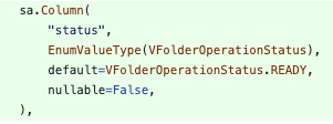 첫번째로 새로 추가한 컬럼(vfolder.status)의 default value 설정값과 관련하여 버그가 발생한 듯하다.